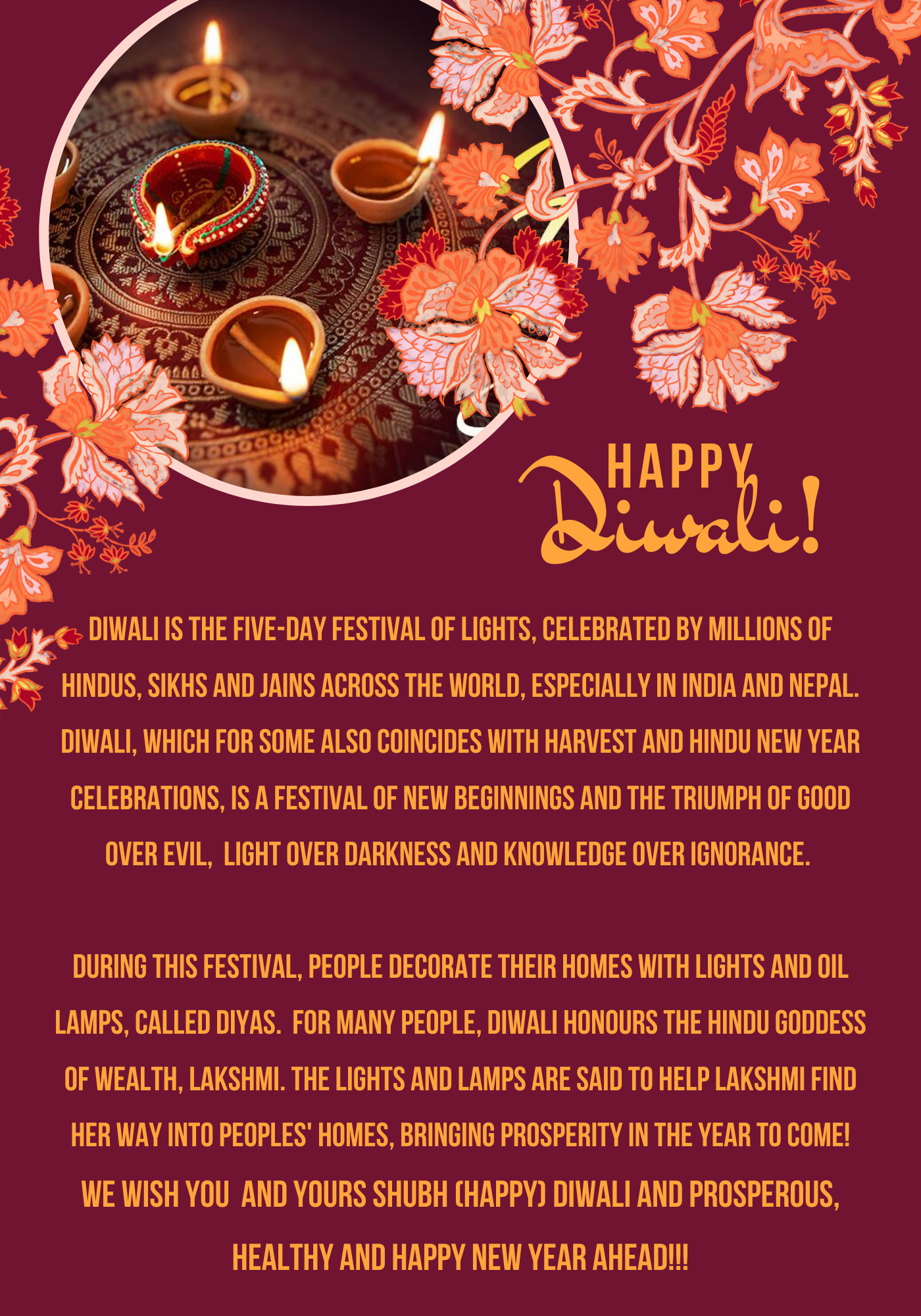 We Wish you and yours Shubh (Happy) Diwali and prosperous, healthy, and happy new year ahead!!!